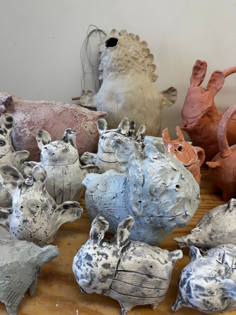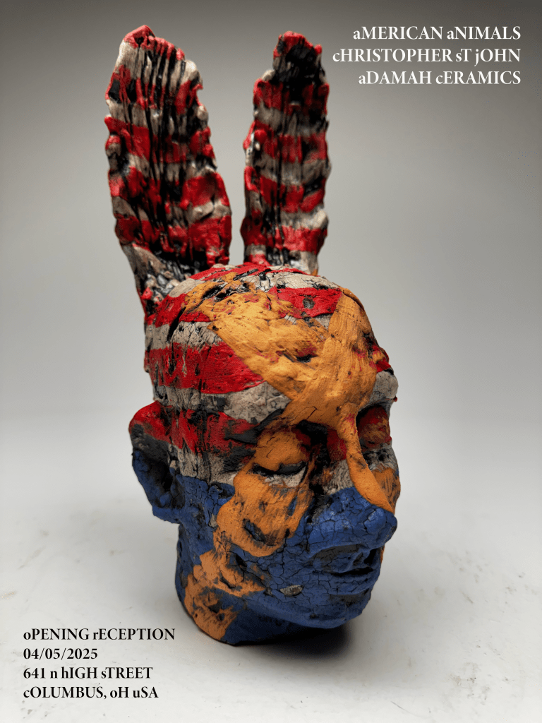My exhibition “aMERICAN aNIMALS” opens next month at Adamah Ceramics. This exhibition of earthenware sculptures reflects on the anxiety and contradictions that define this American moment.